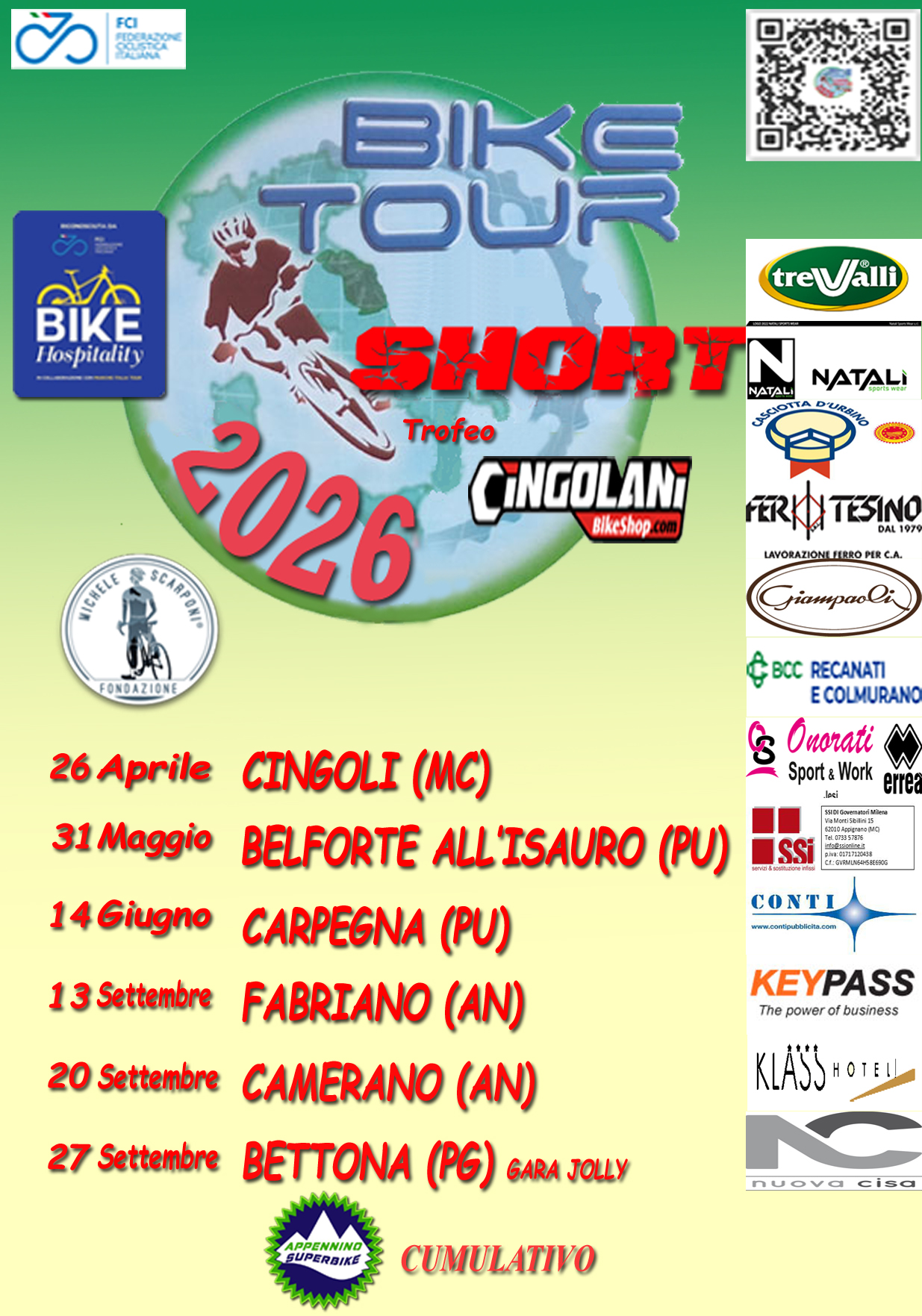 La BIKE TOUR MARCHE SHORT, successivamente denominata BTMS, è un circuito MTB Marchigiano di Medio Fondo organizzate sotto l’egida della F.C.I. con lo scopo di promuovere la disciplina della Mountain Bike e raccontare i territori ospitanti (per quanto non contemplato nei regolamenti delle singole gare si fa riferimento alle norme attuative della F.I.C.).